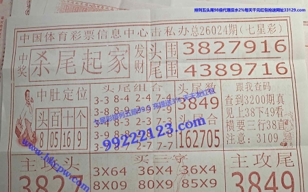 第26022期七星彩开奖结果:7991 023 【体