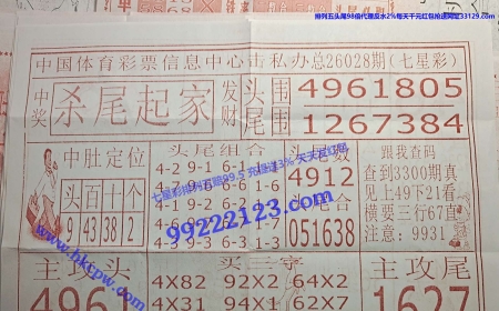 第26027期七星彩开奖结果:8773 609【体